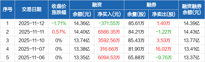 中国中冶:融资净偿还371.55万元,融资余额14.36亿元(11-12)