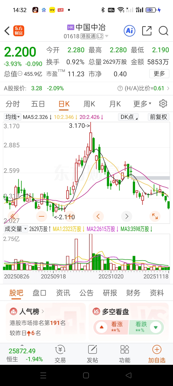 $中国中冶(SH601618)$ 别再在A股惨叫连连了,人家H股跌这么多也能平静接受。