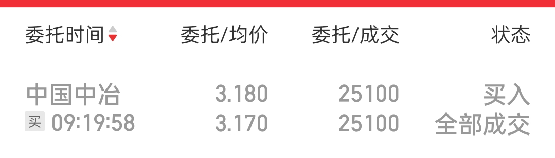 $中国中冶(SH601618)$ 刚到帐8万元,开盘前3.18元挂的买单,3.17元成交,多一两分无所谓!今天是11月份最后一天,我怕12月份没有低吸机会。