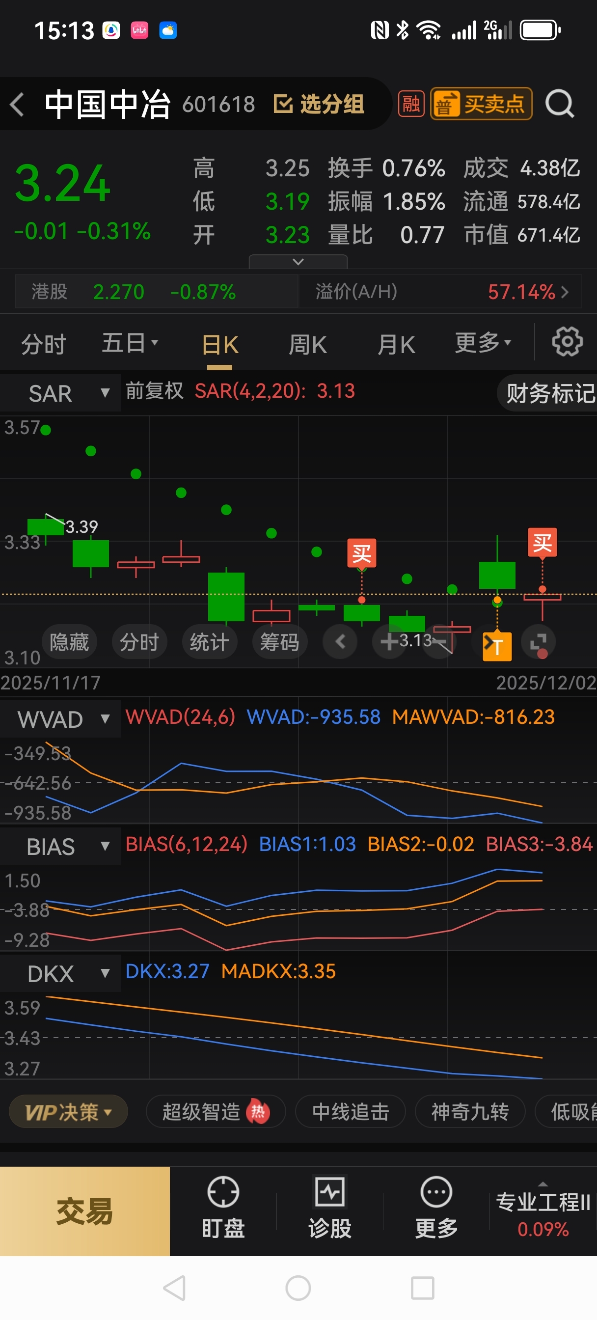 中国中冶,建仓3.19,清仓3.34,已买回3.25,3.20。