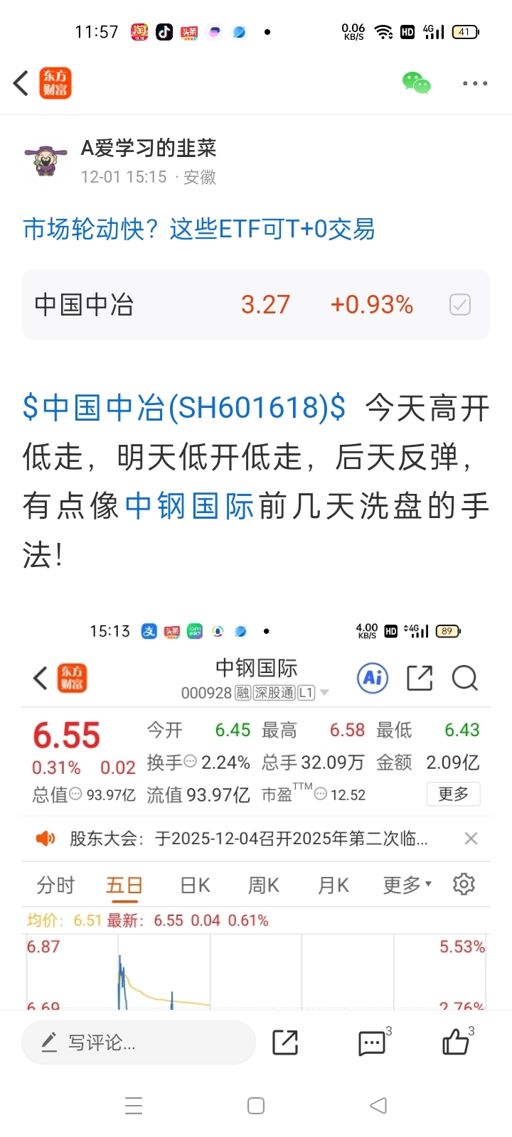 $中国中冶(SH601618)$ 没想到前天预测还准的很,可惜一年的韭菜盯盘下跌心疼,昨天卖了,