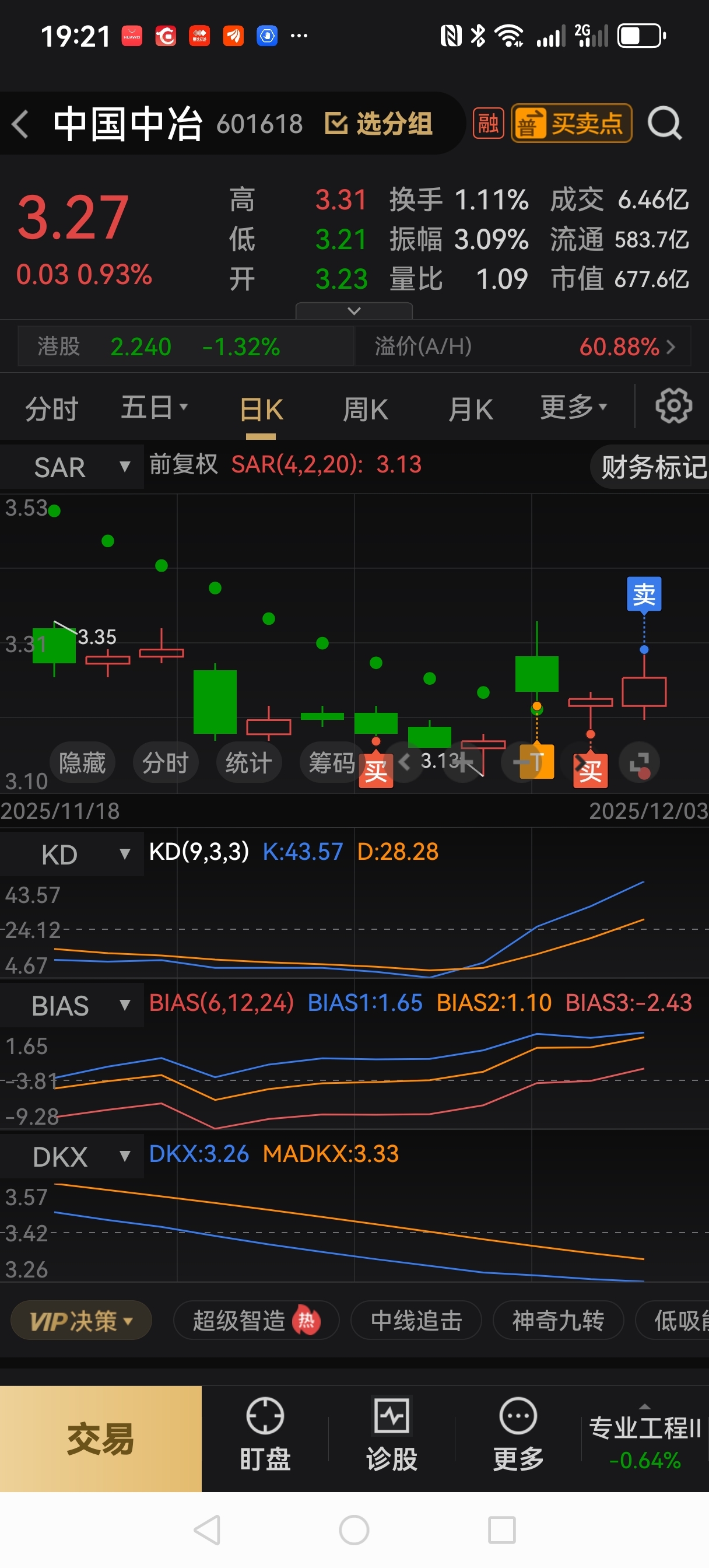 中国中冶,12月3号,已清仓3.29(18*97*5)