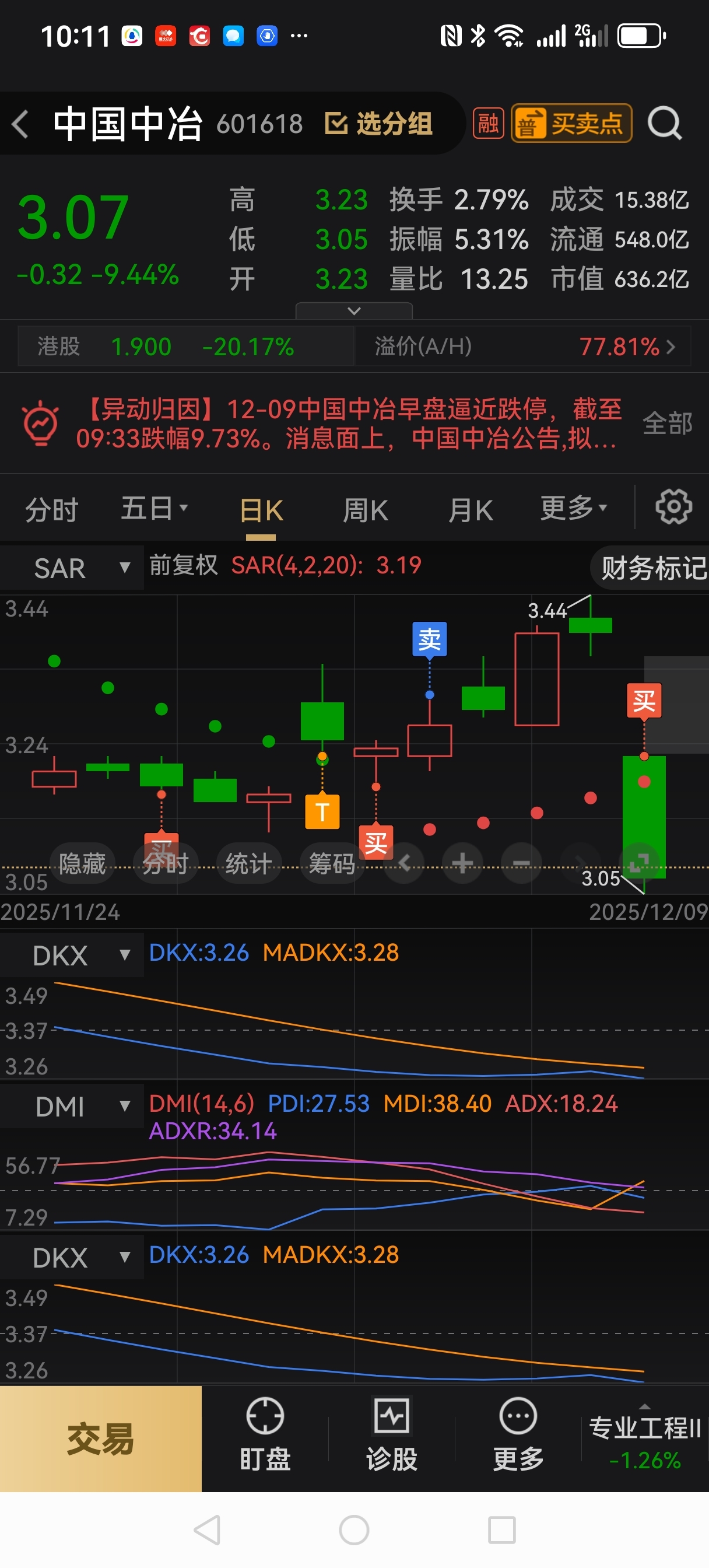 中国中冶,12月3号清仓3.29(18*97*5)12月9号,已建仓3.09一手