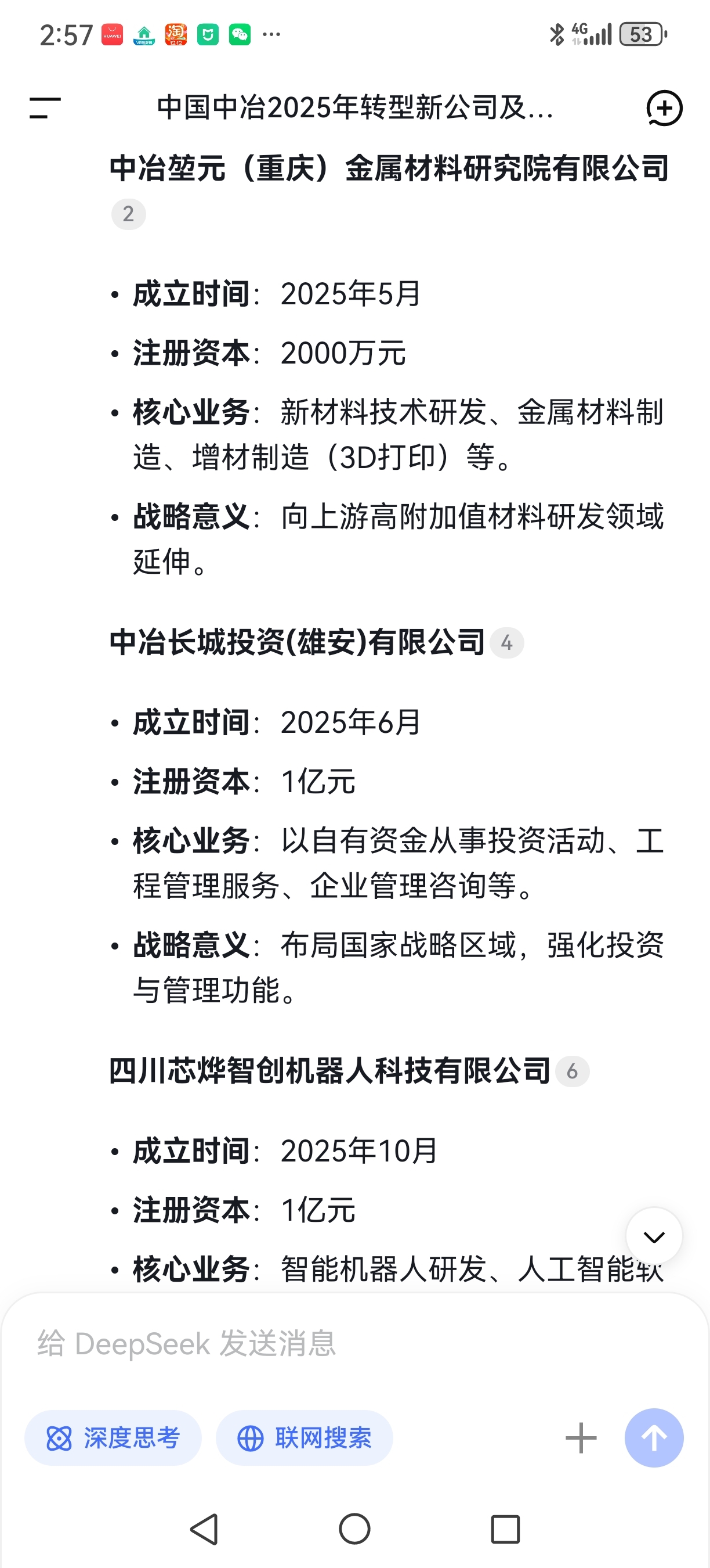 $中国中冶(SH601618)$ 中国中冶转型将围绕新材料技术开发,人工智能,机器人领域发展,剥离非核心资产对中国中冶长期来看绝对是利好,铜矿的剥离我认为也是好事,国外的铜矿存在太多不确定性因素。聚焦本身业务,发展新型科技。
