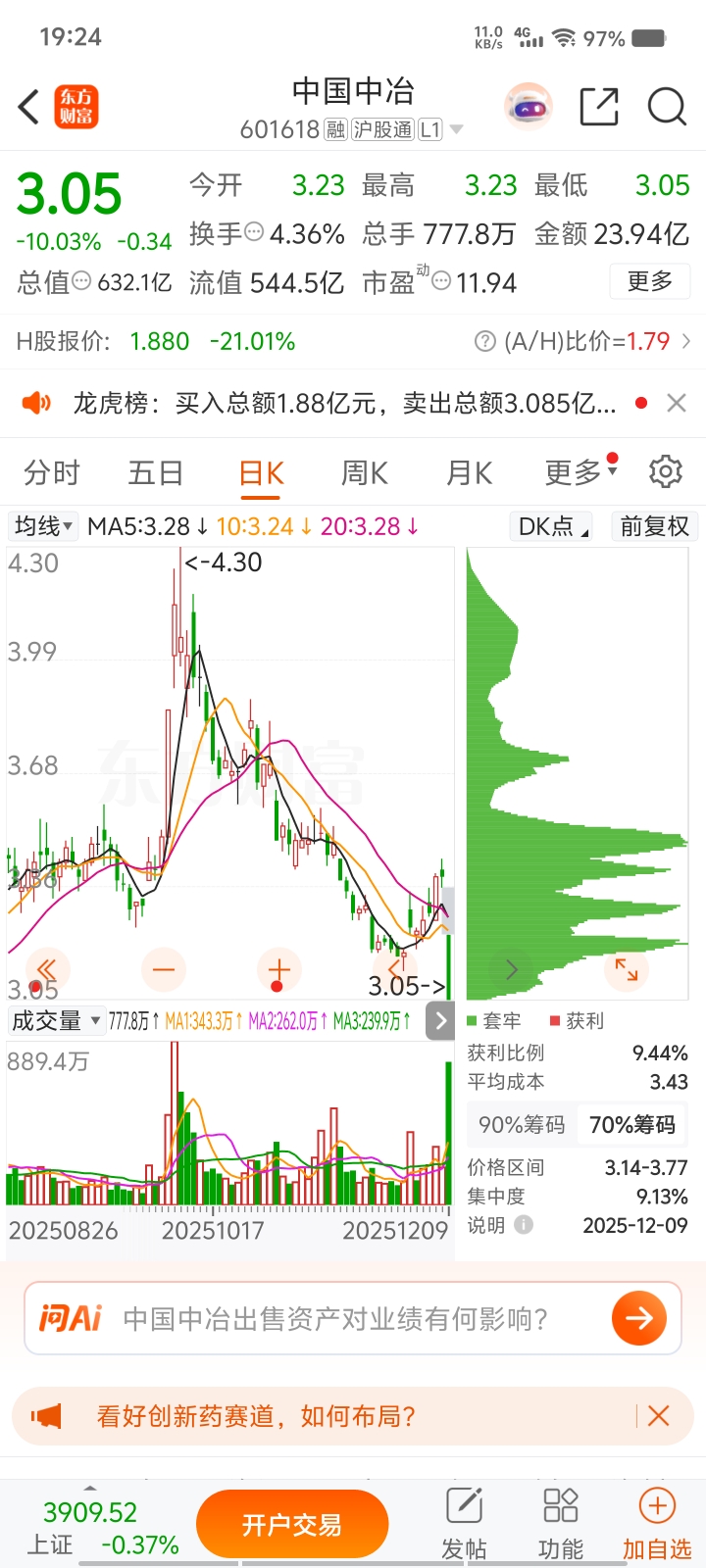中国中冶的散户发言令人揪心再次重申,下跌没有底的!不要买下跌趋势的股票