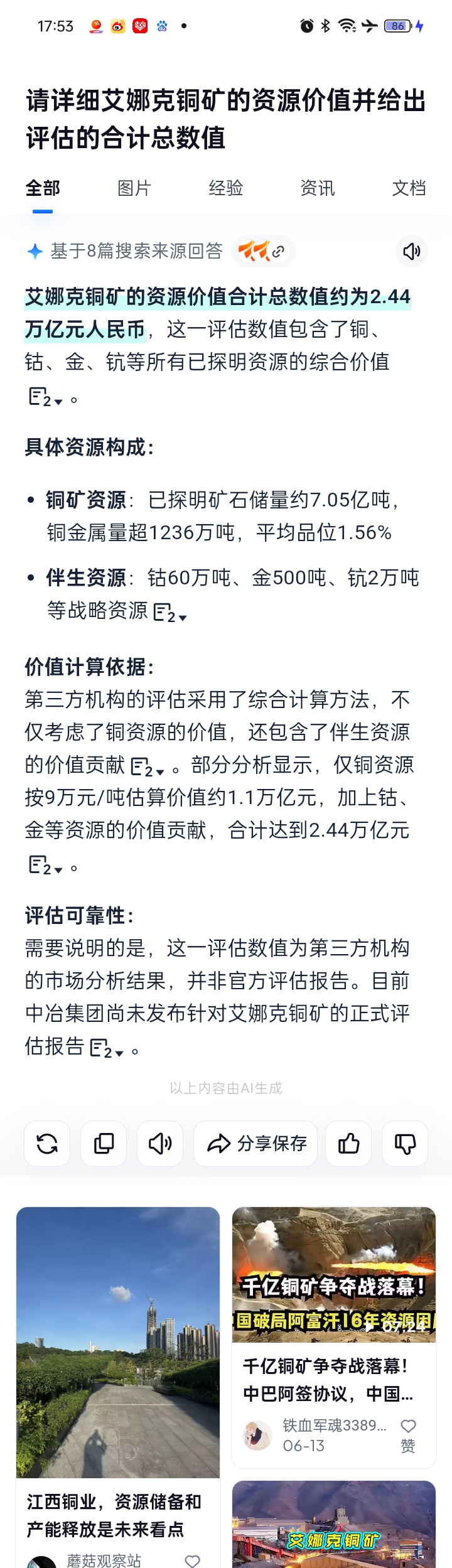 $中国中冶(SH601618)$  艾娜克铜矿的AI资源价值评估分析报告来了,同意的点赞。