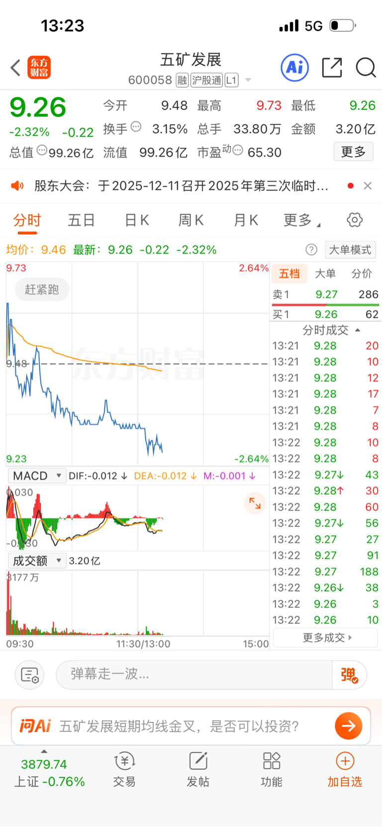 $中国中冶(SH601618)$ 五矿也跌了,大家同喜同喜,一起打折卖