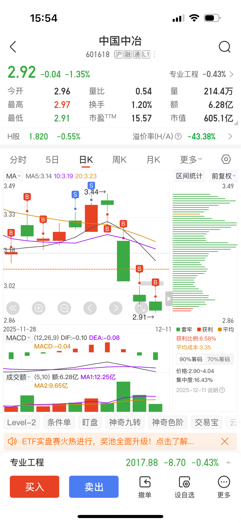 $中国中冶(SH601618)$ 就不信了 国企就没有一点底线 加仓