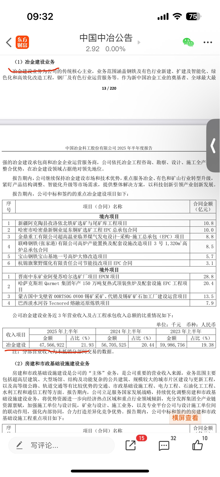 中国中冶因为出售房地产和矿产业务的公告,A股股价跌了10%,H股跌了20%,现在A股总市值只有609.3亿,H股$中国中冶(HK|01618)$ 总市值只有381.3亿;实际上,中国中冶的矿产和冶金工程业务的年收入高达1000亿,这是向矿产公司、有色金属公司卖铲子的业务,是有一定的行业壁垒和竞争力的,在全球金属价格上涨、在矿产股和有色股大涨的阶段,中冶这部分业务如果单独出售的话估计能值个1000亿,远超目前中冶A股或H股的市值;可以说,目前中冶的市值远未反应自身价值!再说一下中冶出售地产业务和矿产业务这件事,整体方向问题不大,但五矿给的价格太低,五矿给地产业务计提了很多亏损,给矿产业务的估值也是大幅偏低的;而且有色院这种冶金工程核心业务关系到中国中冶的核心竞争力,是不应该出售的;总之,我会对$中国中冶(SH601618)$ 本次资产出售投反对票!