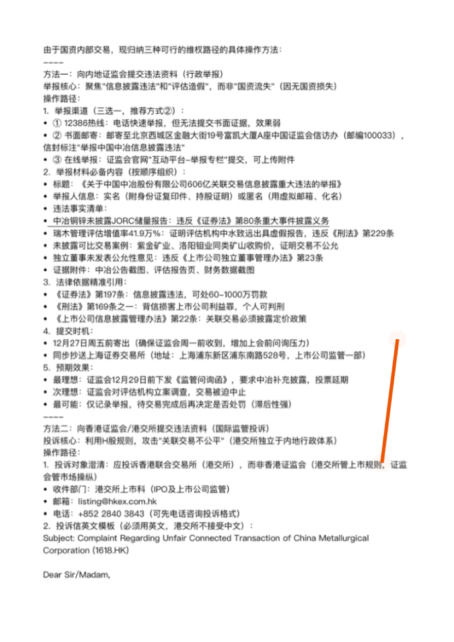1.  12月27日:完成证监会书面举报 + 港交所英文投诉(同步进行)