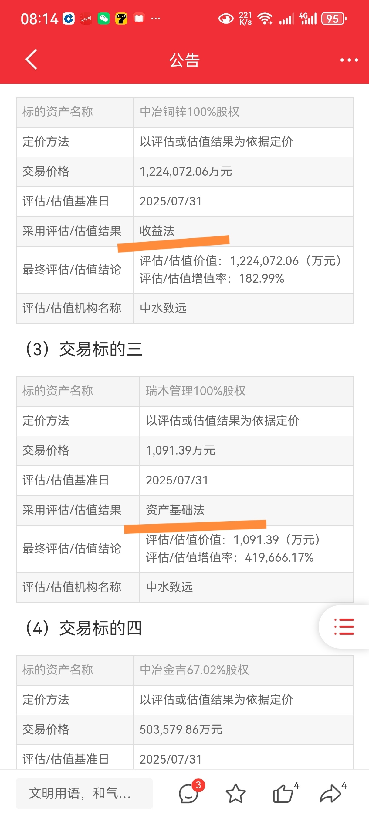 中冶铜锌评估采用的是收益法,其他变卖的的采用的是资产基础法,这个评估有问题,把中