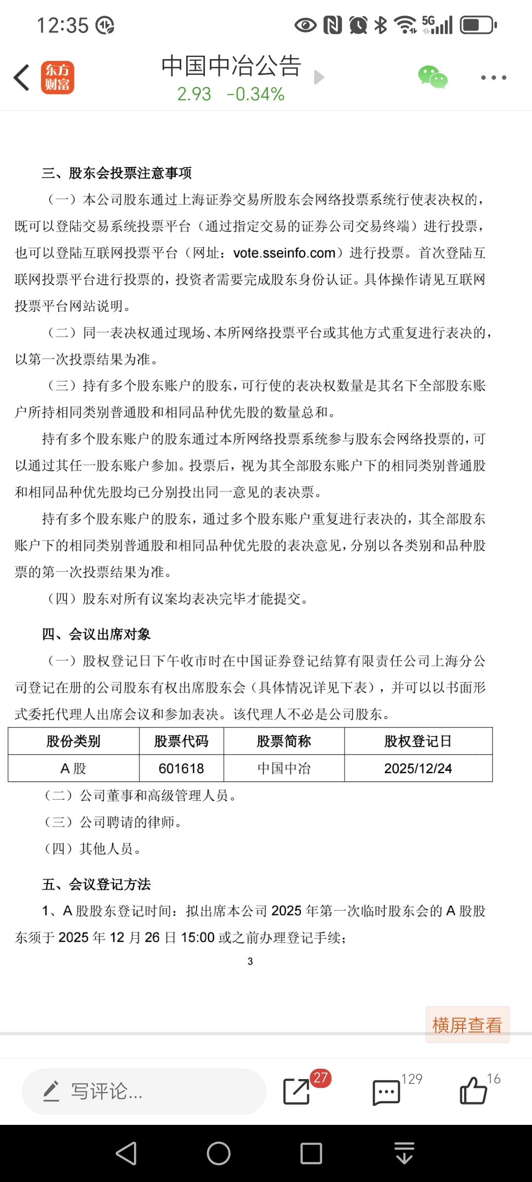 $中国中冶(SH601618)$ 投票和凳记时间。