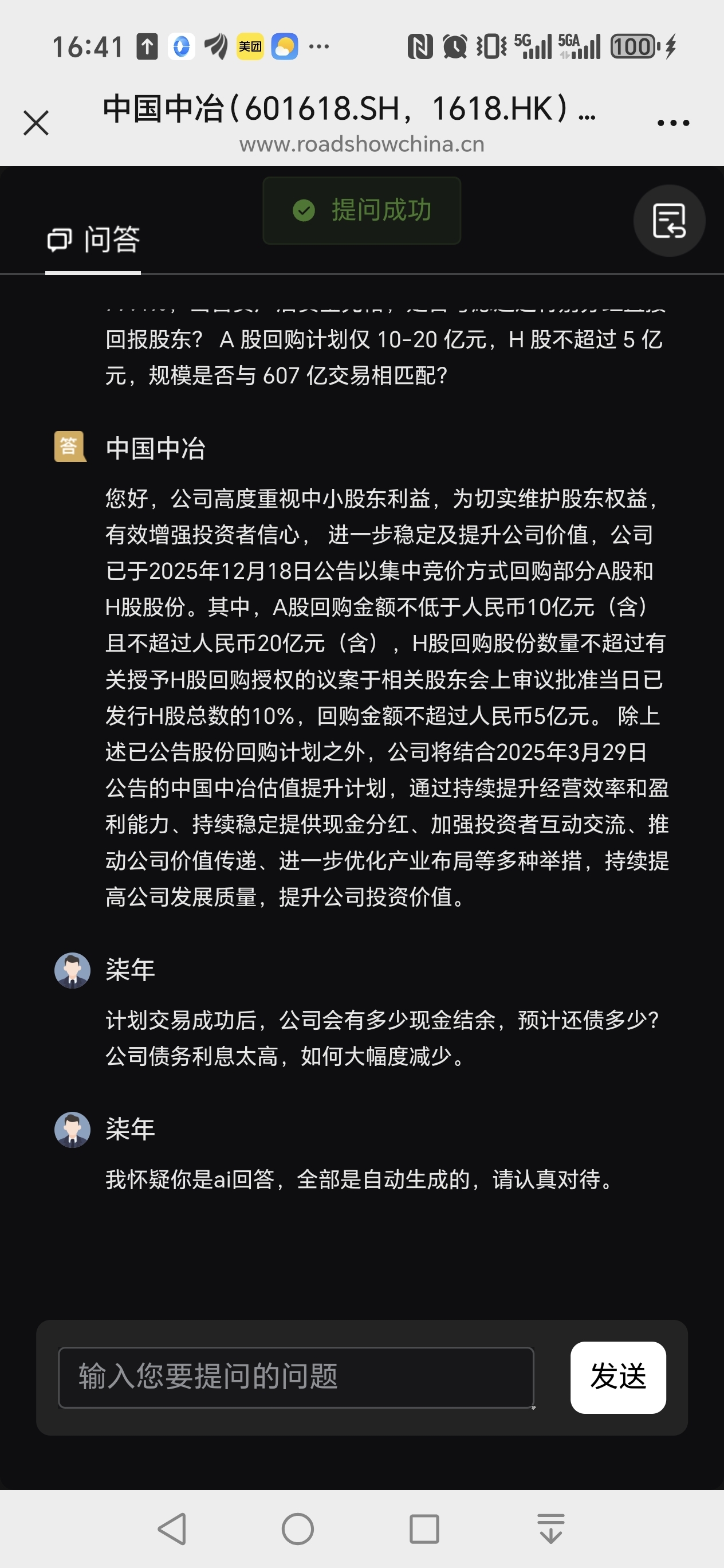 $中国中冶(SH601618)$ 你们有看到我的提问吗?