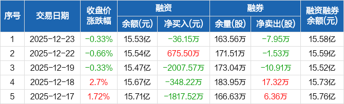 中国中冶:融资净偿还36.15万元,融资余额15.53亿元(12-23)