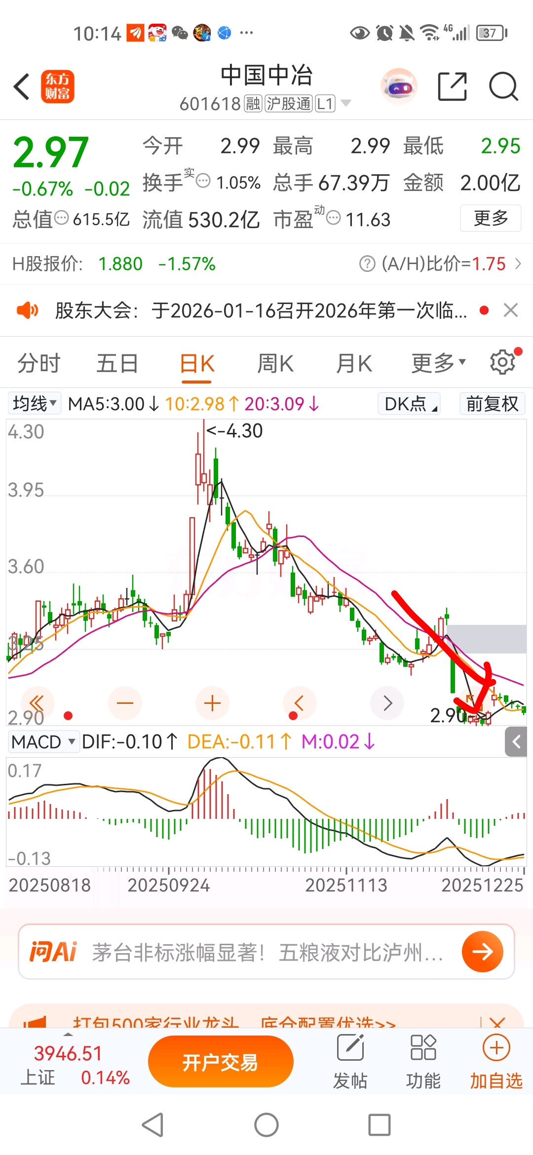 $中国中冶(SH601618)$ 黄线已破可以融券做空了兄弟们