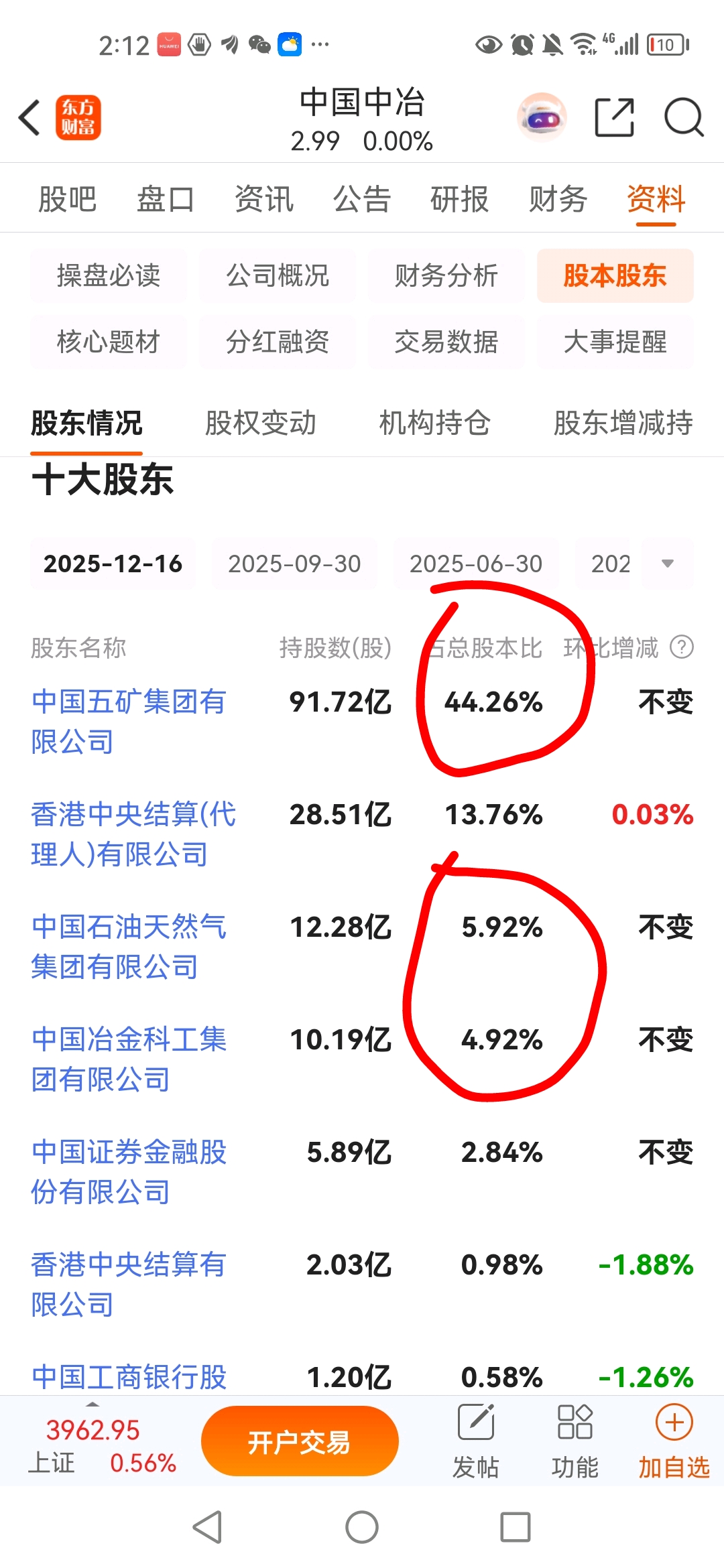 $中国中冶(SH601618)$ 来个人帮我算算够半数没有,来五矿吧,这就是诱多