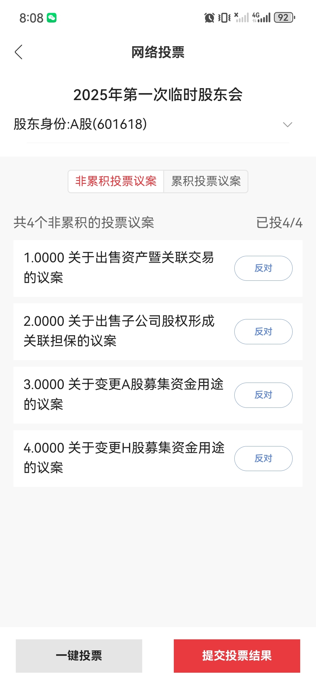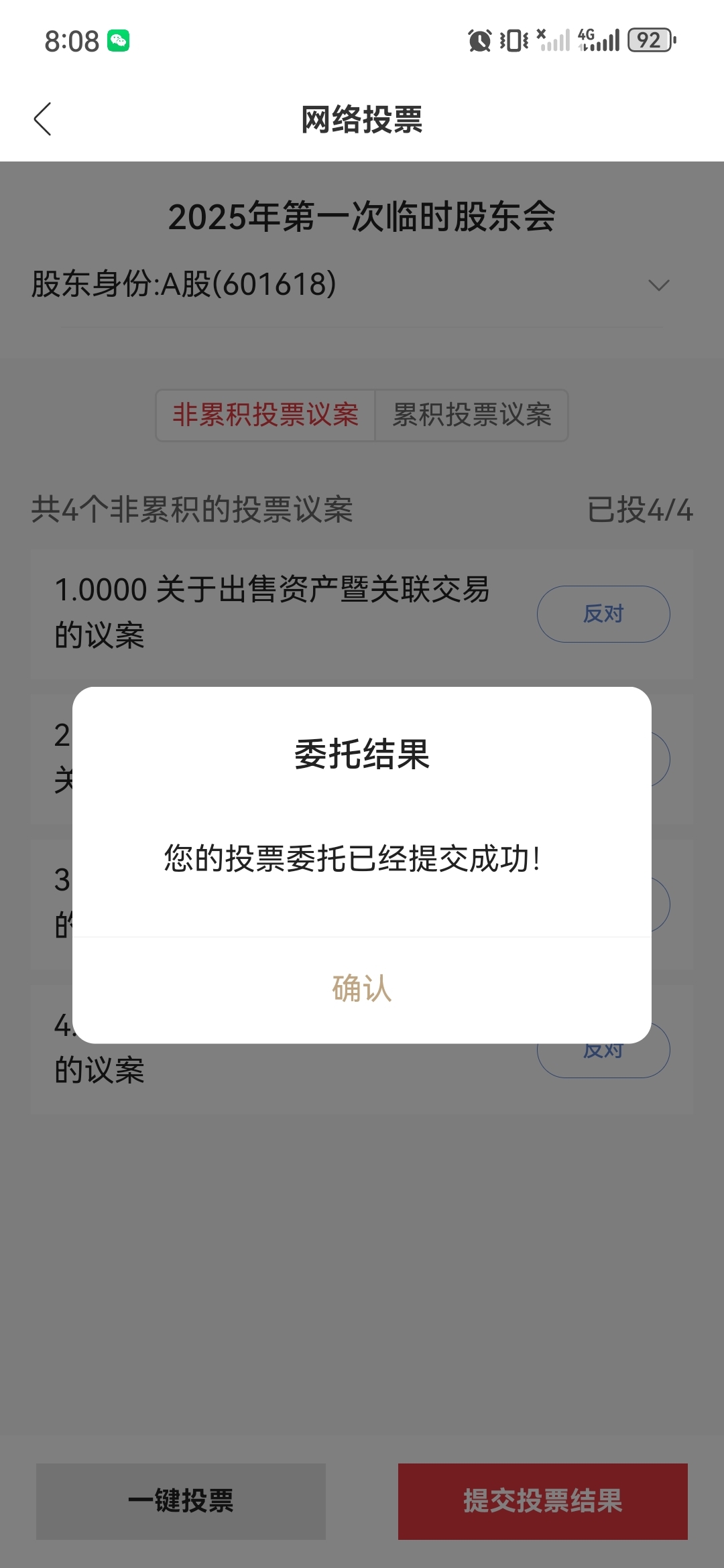 招商证券,不需要输入票数,应该默认全部票,3万多票,已投反对,10点后再确认