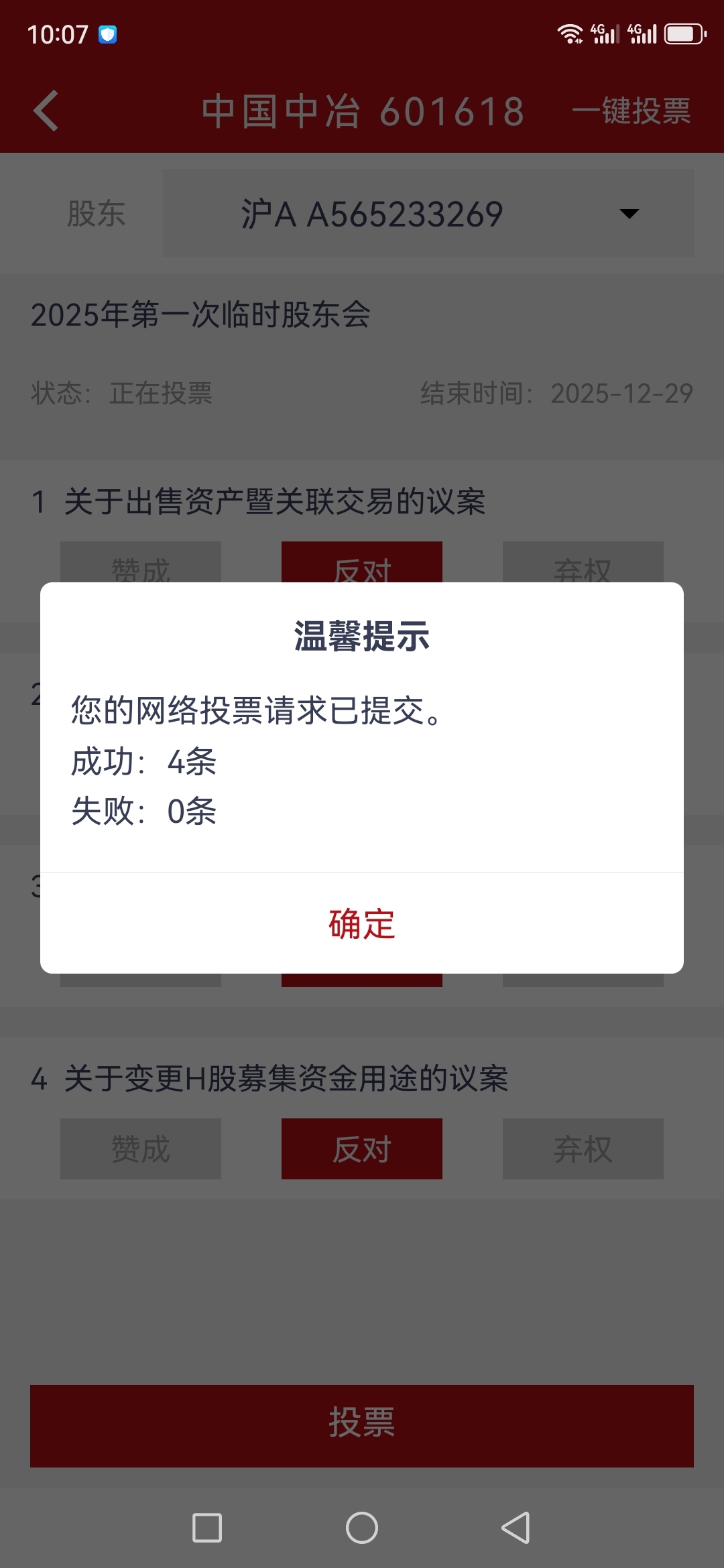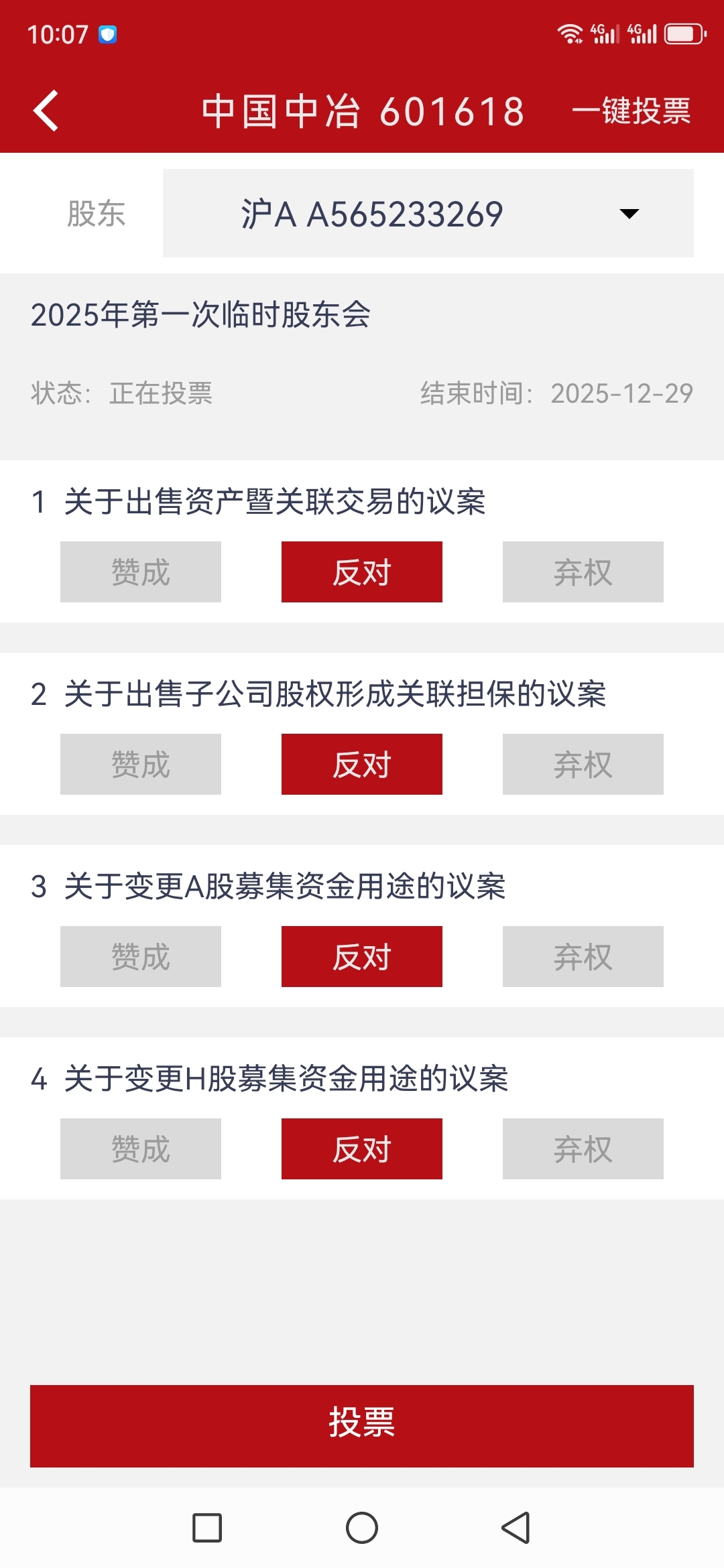 $中国中冶(SH601618)$ 全部反对已投票
