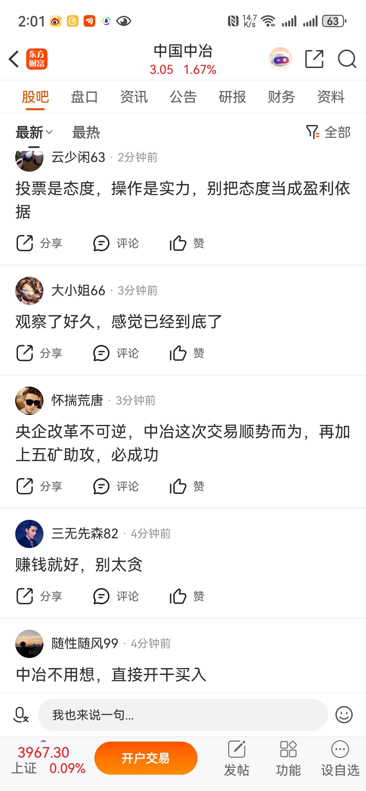 $中国中冶(SH601618)$ 大家看一下这个图片,全是雇佣来诱导小股东投赞试票的水军机器人,而且把其他网友的真贴子压下去!