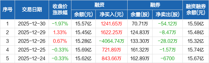 中国中冶:融资净买入1241.65万元,融资余额15.57亿元(12-30)