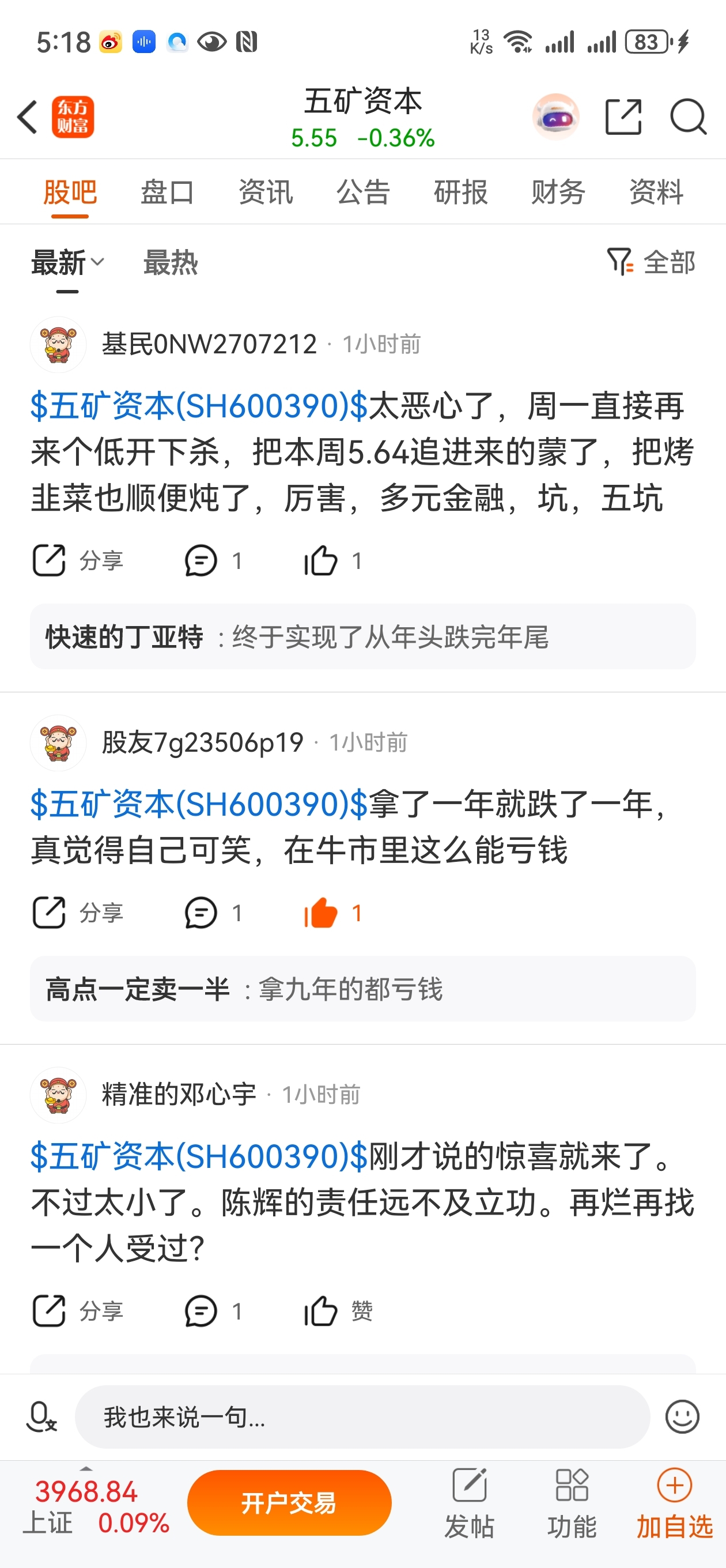 $中国中冶(SH601618)$ 五矿资本2025年收盘价5.55