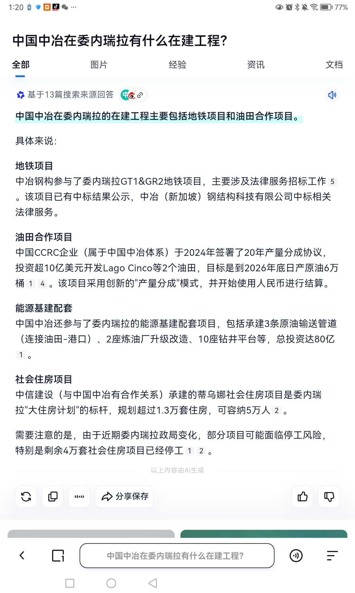 $中国中冶(SH601618)$ 中国中冶在委内瑞拉有什么在建工程?