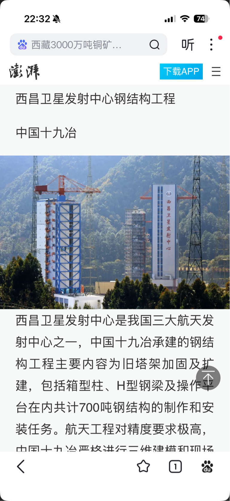 $中国中冶(SH601618)$ 中国中冶,卫星发射台的建设包工头