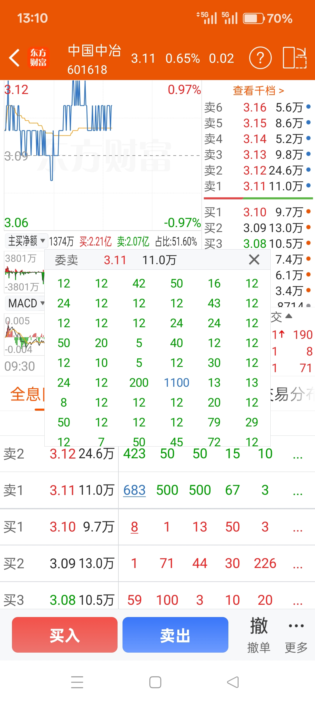 $中国中冶(SH601618)$ 机构卖单肆无忌惮压盘,必涨