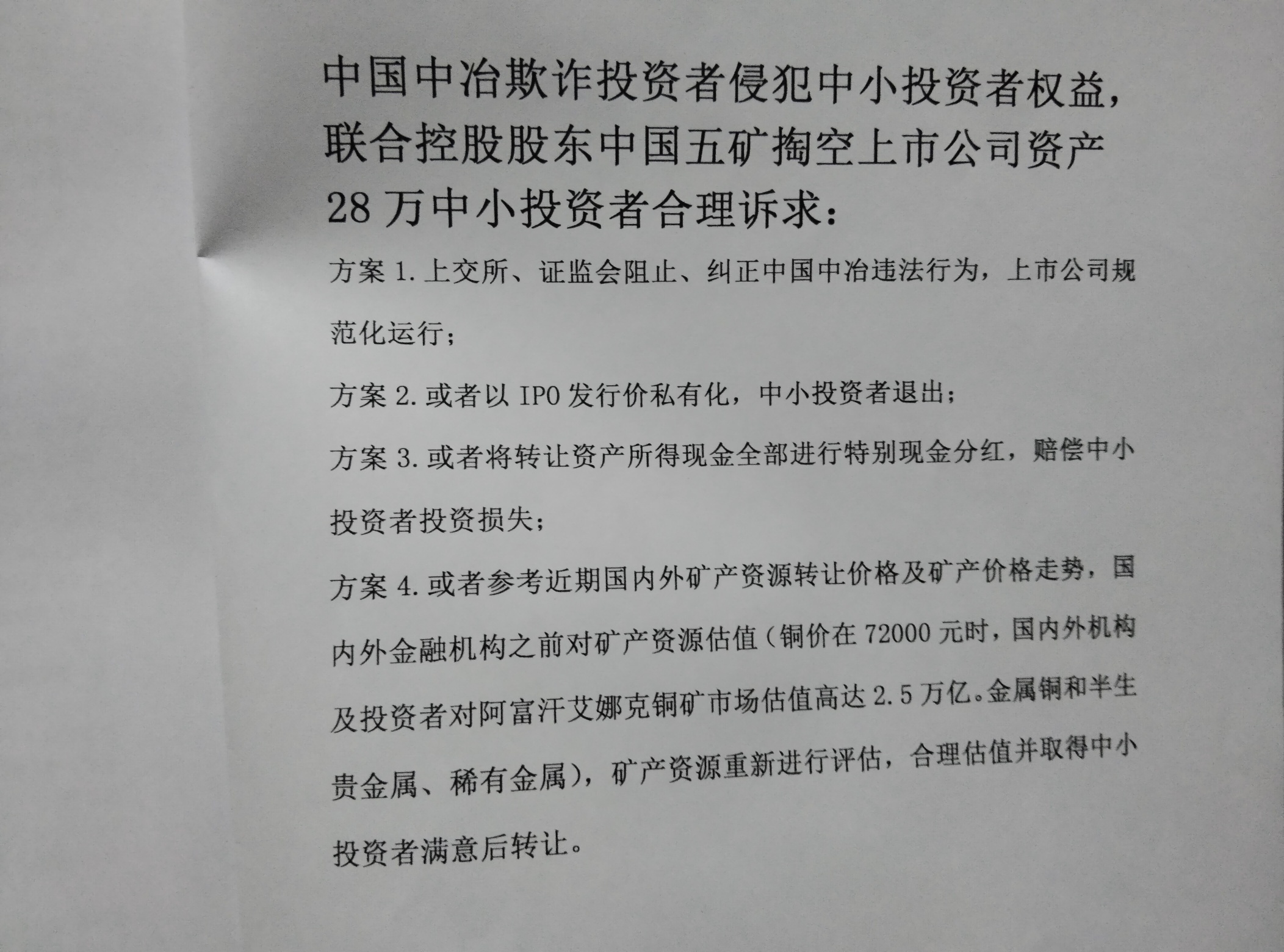 $中国中冶(SH601618)$ 今天 28.5万中小投资者合理诉求。