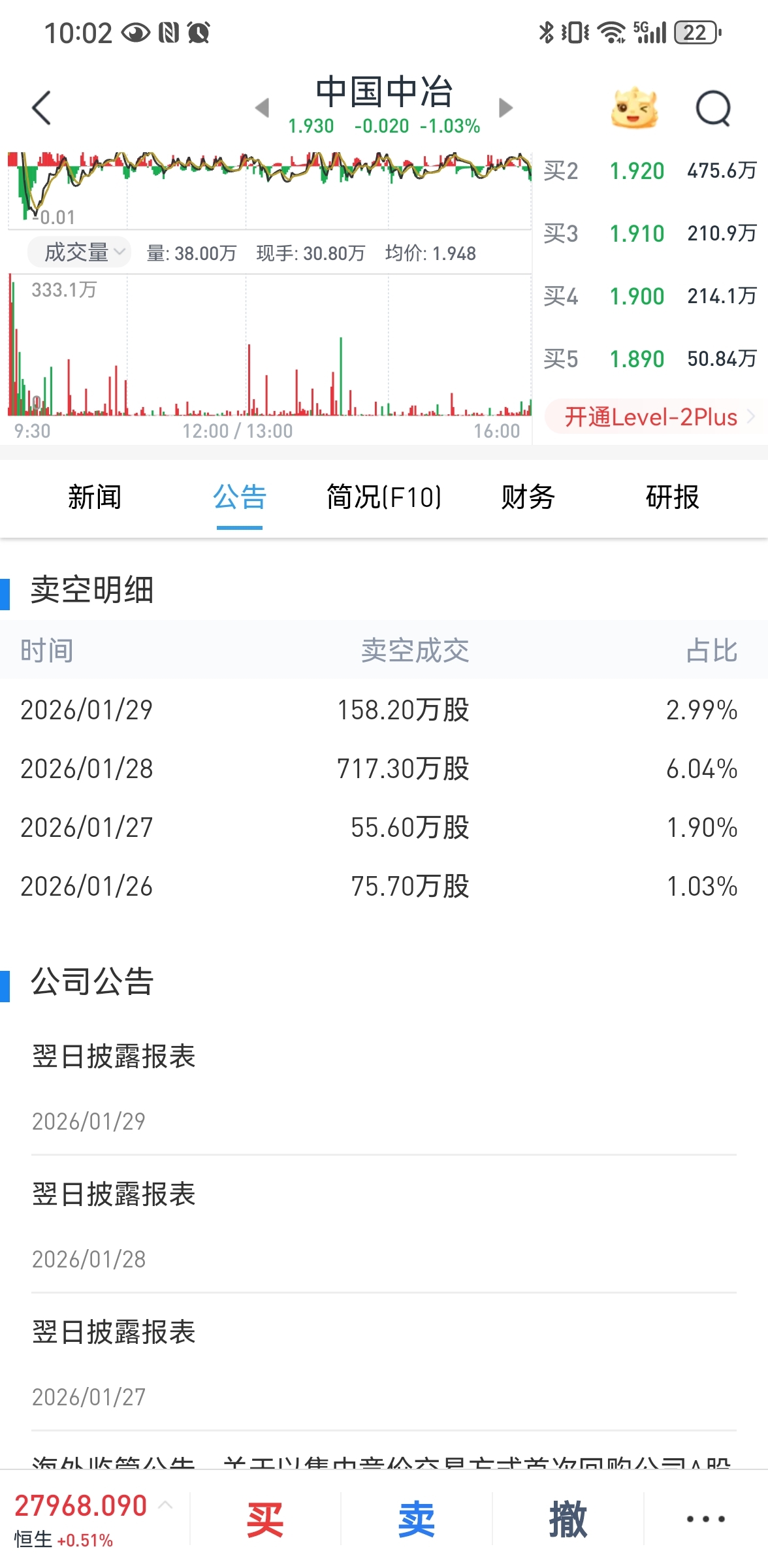 $中国中冶(SH601618)$ 这么多卖空的。还想早做梦呢。