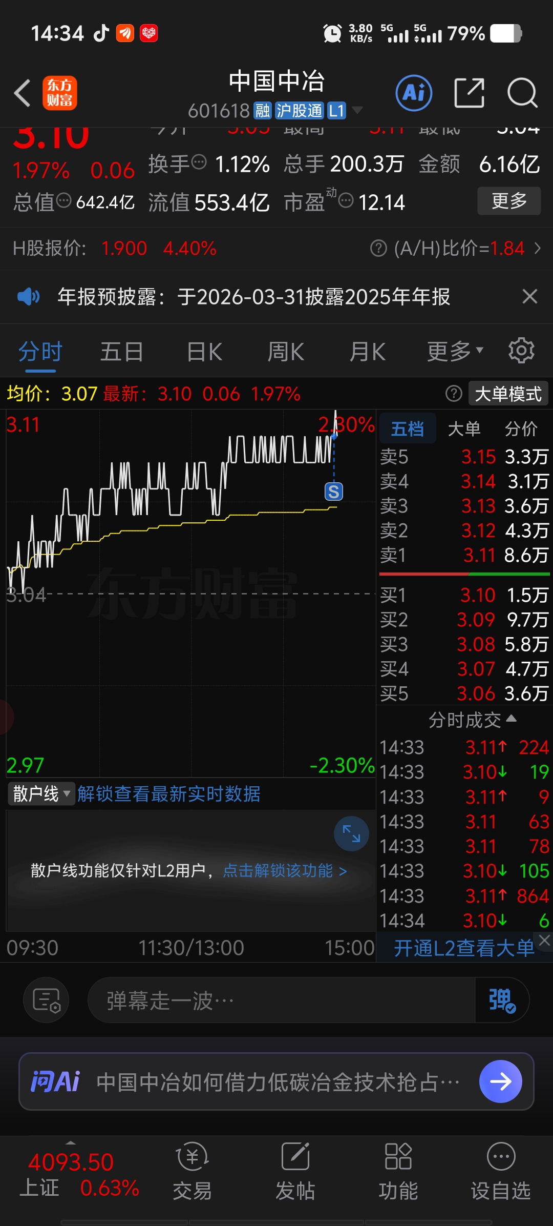 $中国中冶(SH601618)$ 仙股我认输了、