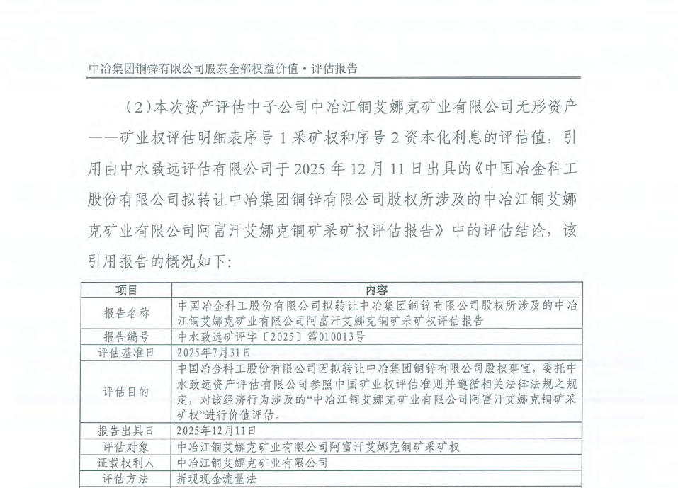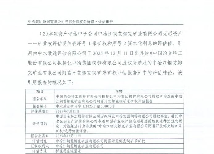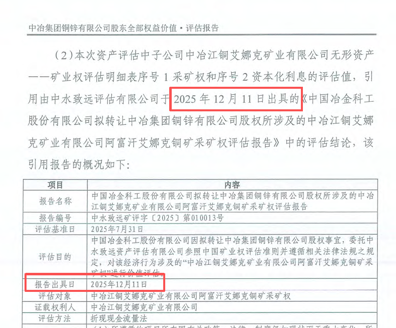 中冶2025.12.9日评估报告存在很大问题,请大家下载评估报告看一下。中冶铜锌