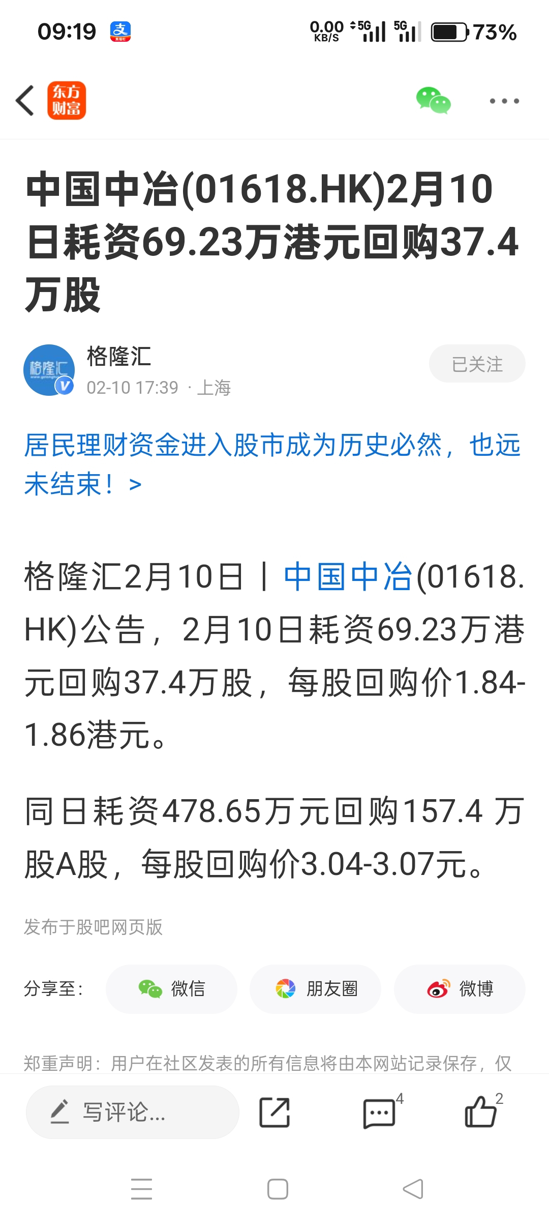 $中国中冶(SH601618)$ 天天回购,1万多手,谁低价割肉啊!