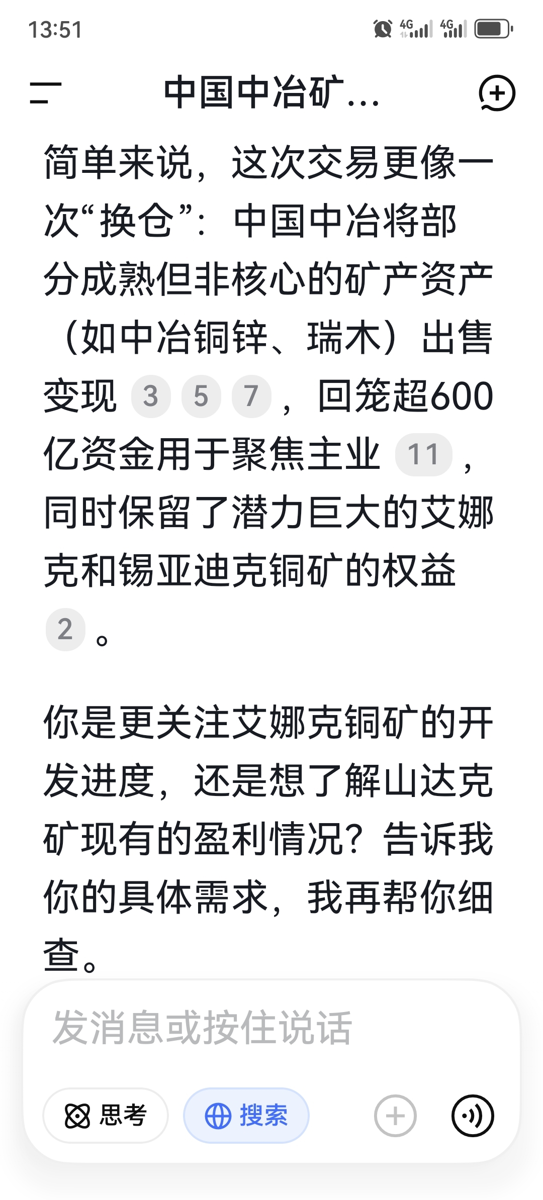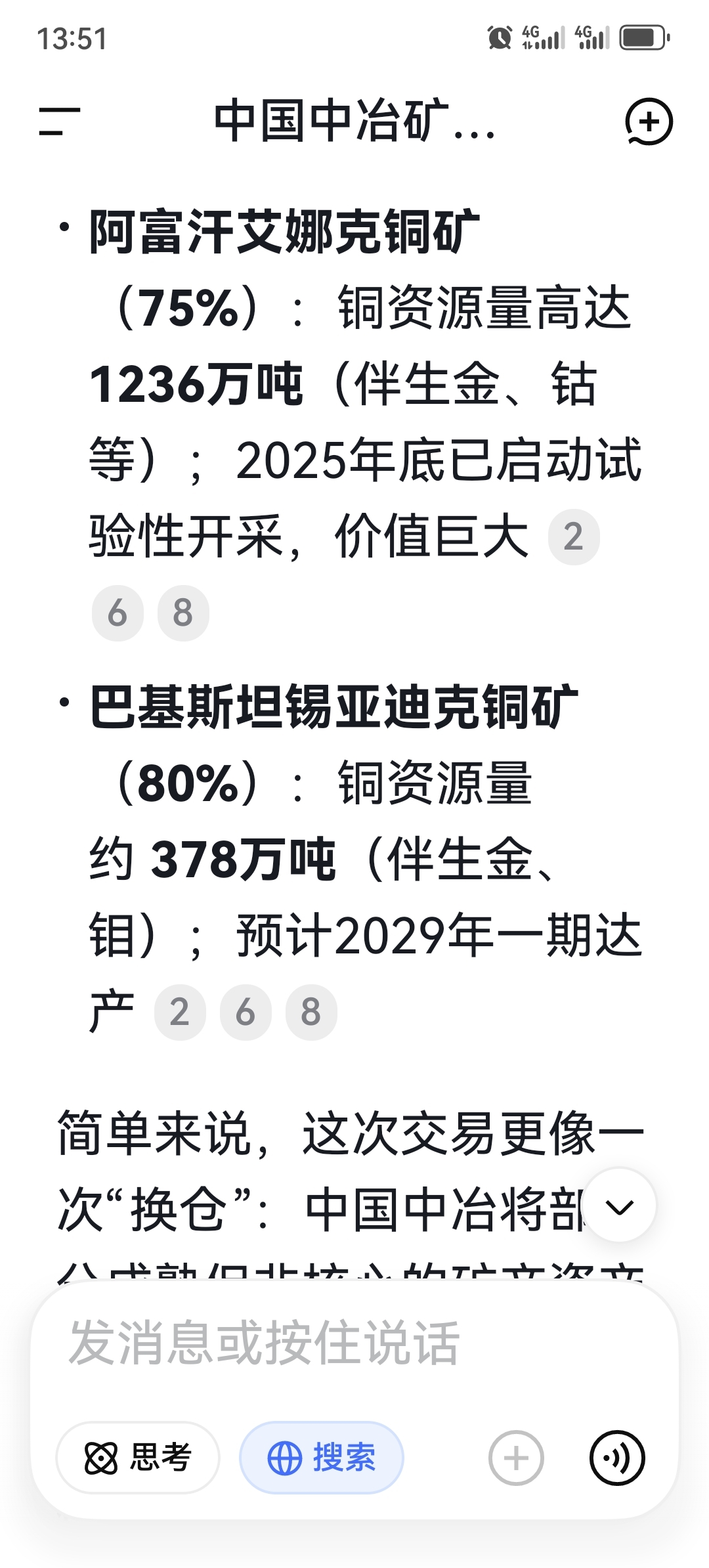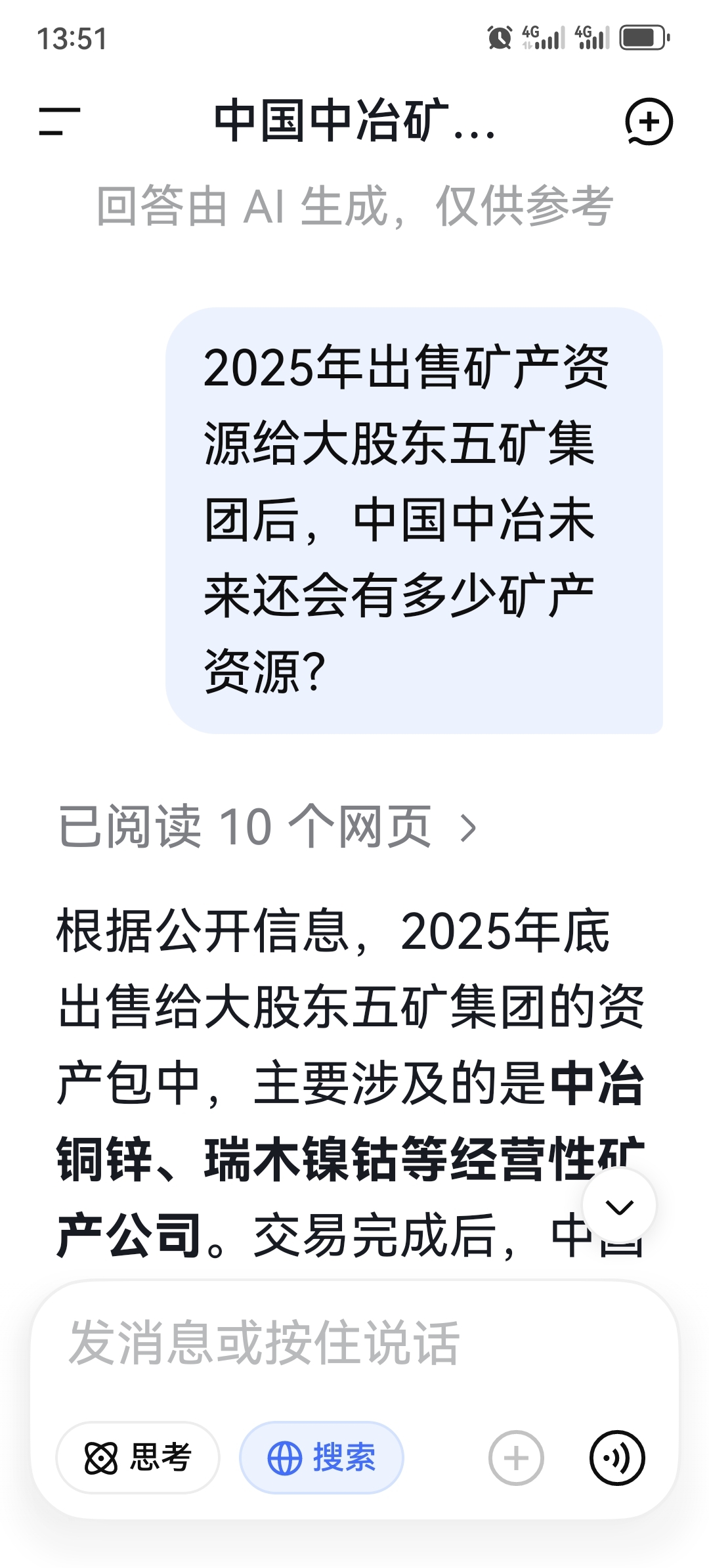 DeepSeek说,中冶的矿产主要资源还在,卖了一部分。
