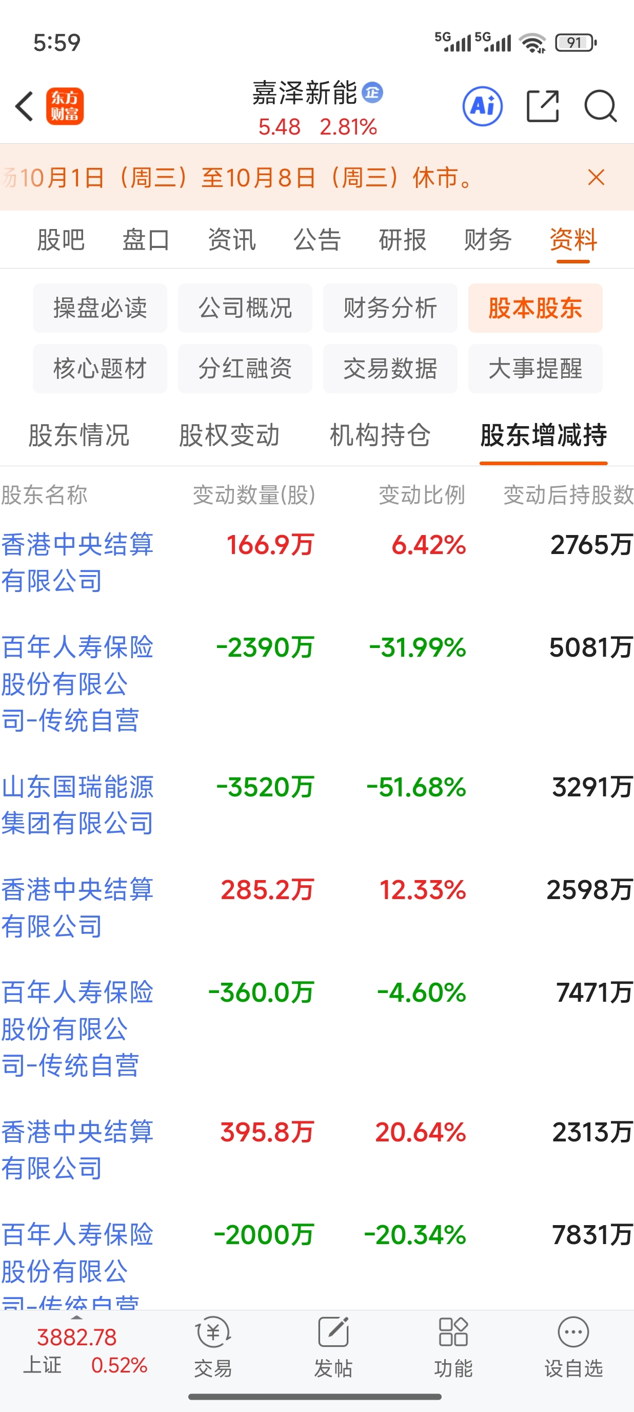 $嘉泽新能(SH601619)$ 两个小股东减持了,看比例推算应该是差不多减持完了。