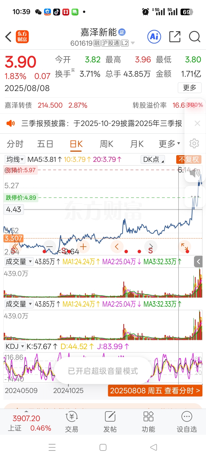 $嘉泽新能(SH601619)$ 随便你表演,成本3.3