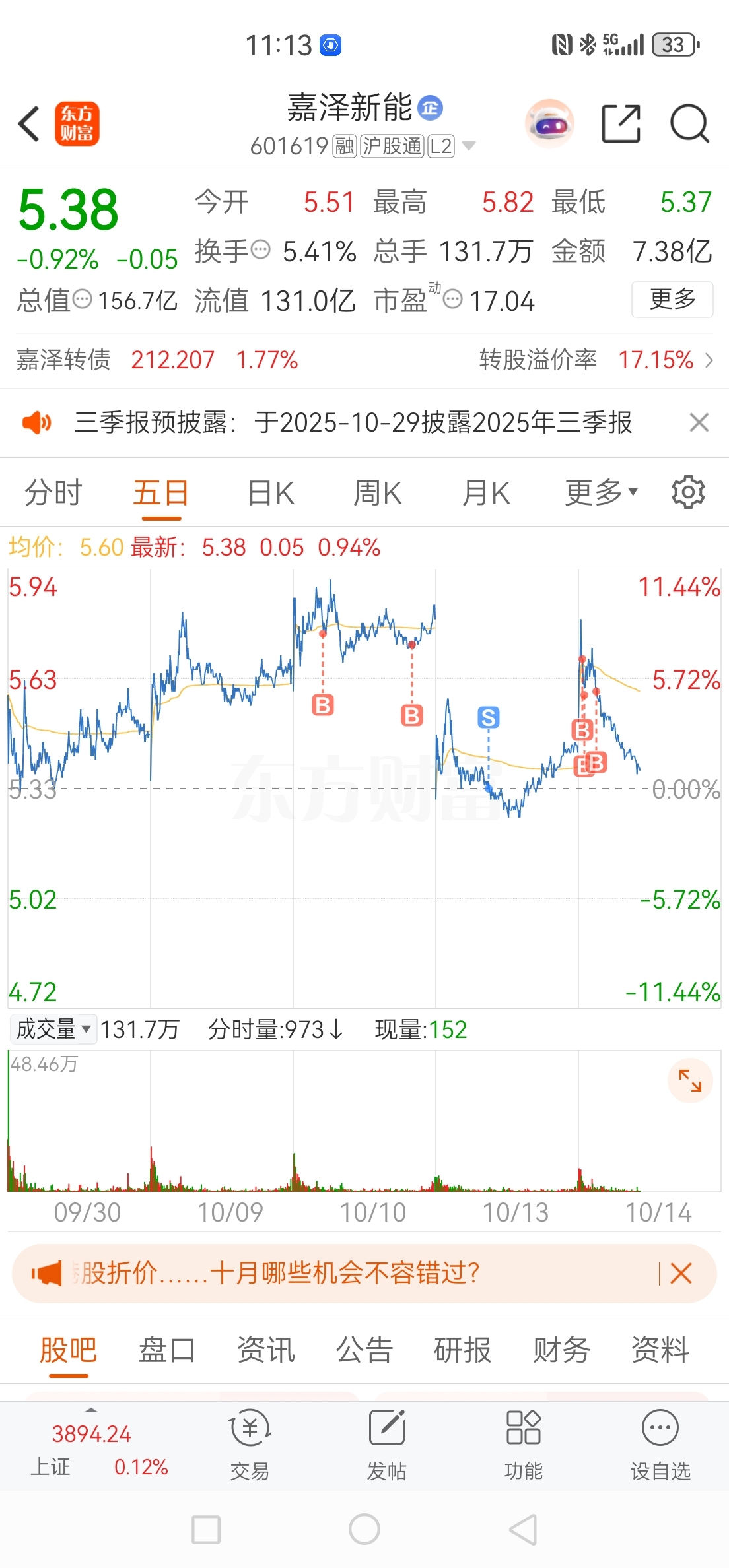 $嘉泽新能(SH601619)$ 这个出生!两天搞我14个点!