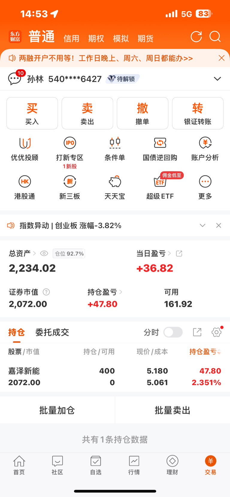 这次操作有点失误,不怕,明天肯定大涨,我还有点利润,不要慌,是技术性调整虽然我看不懂