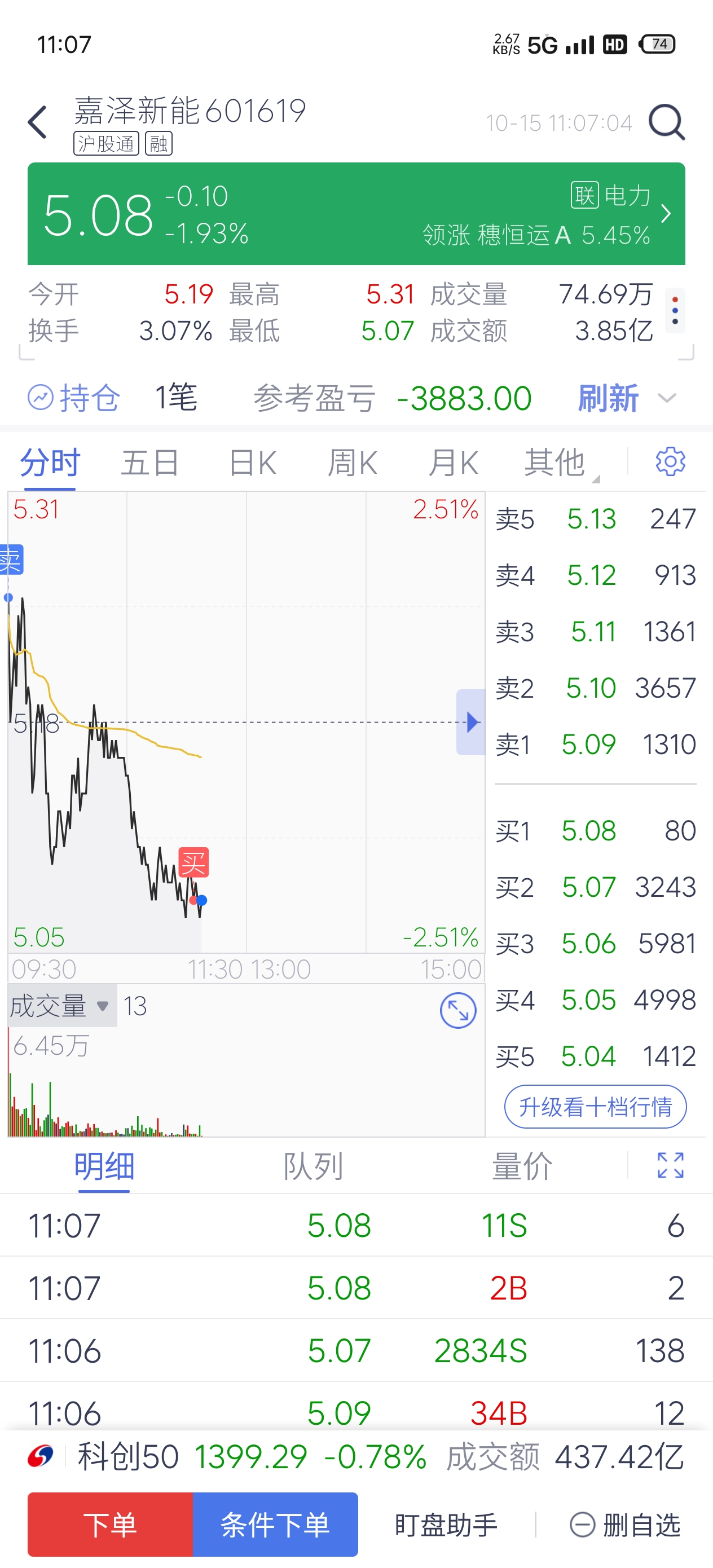 $嘉泽新能(SH601619)$ 自从买了这次票,整个人都精神多了,是不是得了精神bing?这周被折磨得不像人了,周一跌到9.5%,周二开盘冲高7个点,收盘翻绿5个点,冲高回落太恶心了,一来一回不见了12个点,今天又是继续跌,能不能给条活路,下午翻红我就卖了