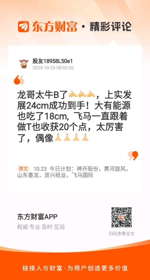,上实发展24cm成功到手!大有能源也吃了18cm, 飞马一直跟着做T也收获20个点,太厉害了,偶像