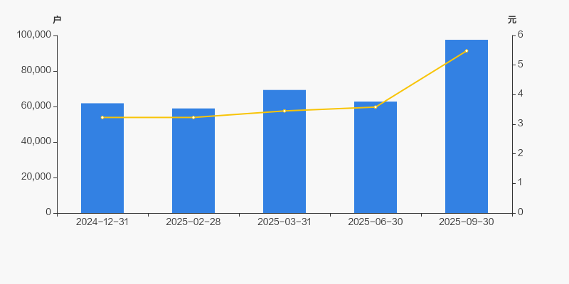 2024年12月31日至今,公司股东户数显著大幅增长,区间涨幅达57.86%。2024年12月31日至2025年9月30日区间股价上涨69.79%。