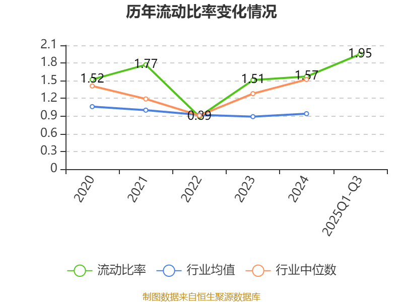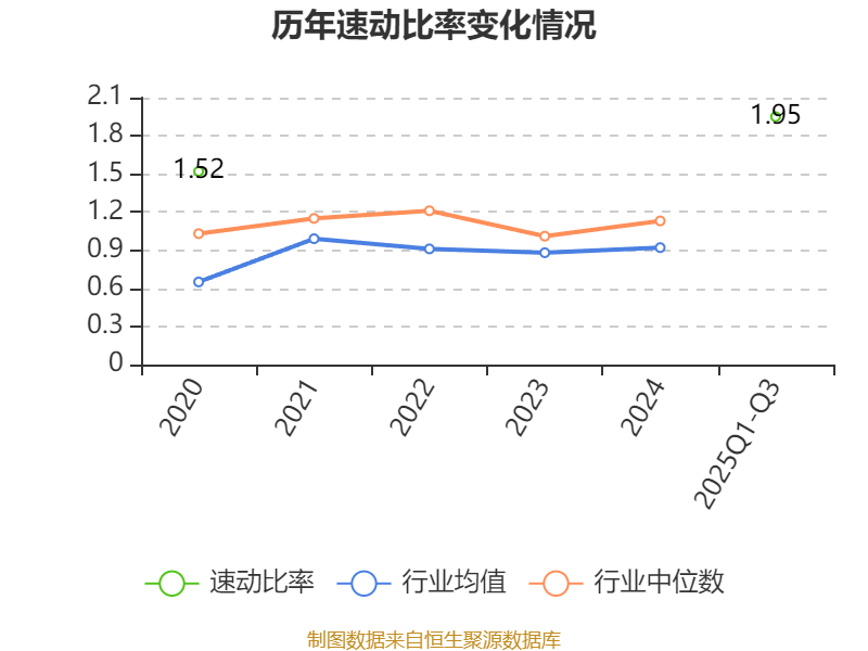 2025年前三季度,公司流动比率为1.95,速动比率为1.95。