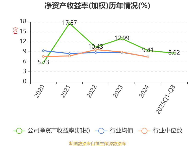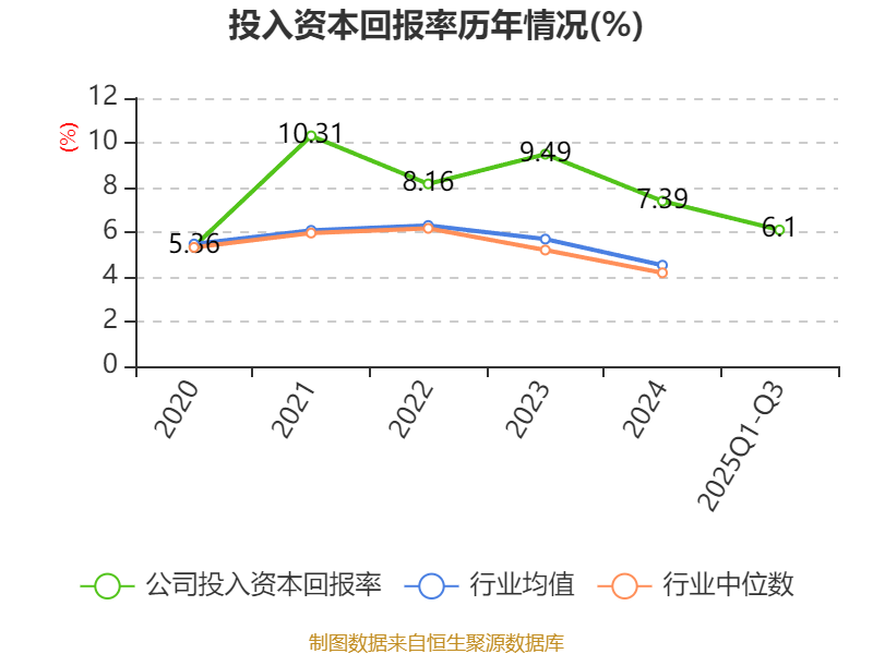 盈利能力方面, 2025年前三季度公司加权平均净资产收益率为8.62%,同比上升0.54个百分点。公司2025年前三季度投入资本回报率为6.1%,较上年同期下降0.04个百分点。