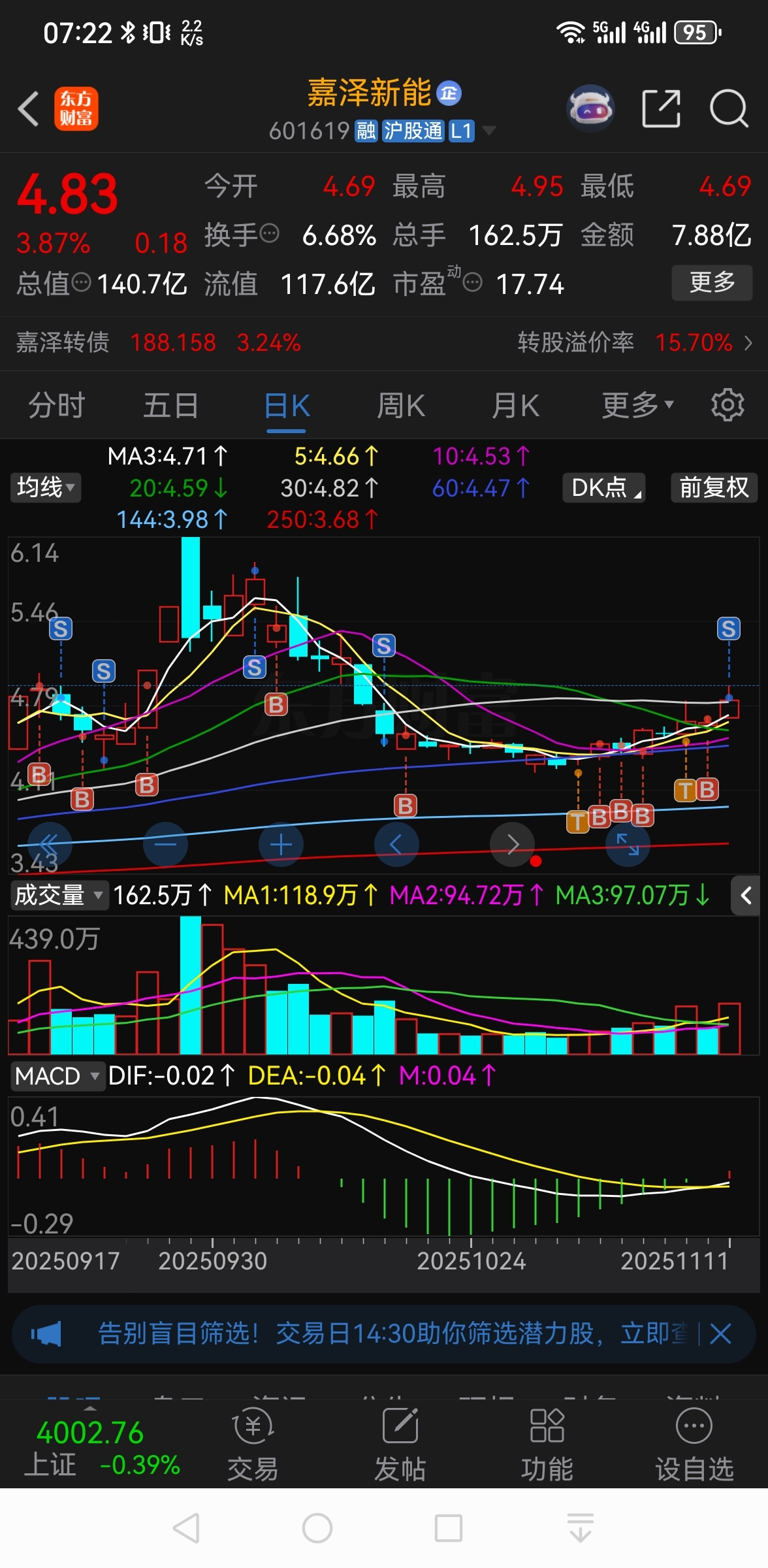 $嘉泽新能(SH601619)$ 昨天说股没卖是错误的,实际高位卖了一点点加到转债上了!
