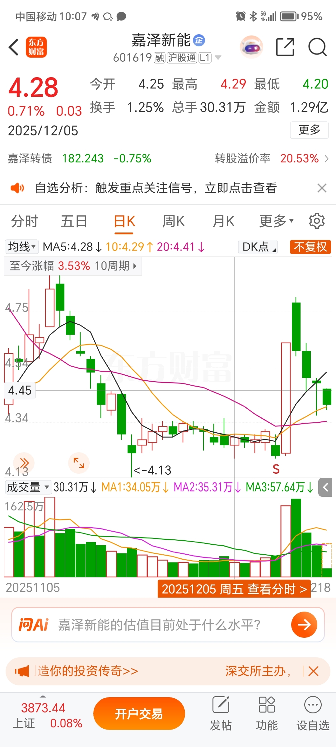 $嘉泽新能(SH601619)$ 4.42~4.47是你的成本价,极限4.20。