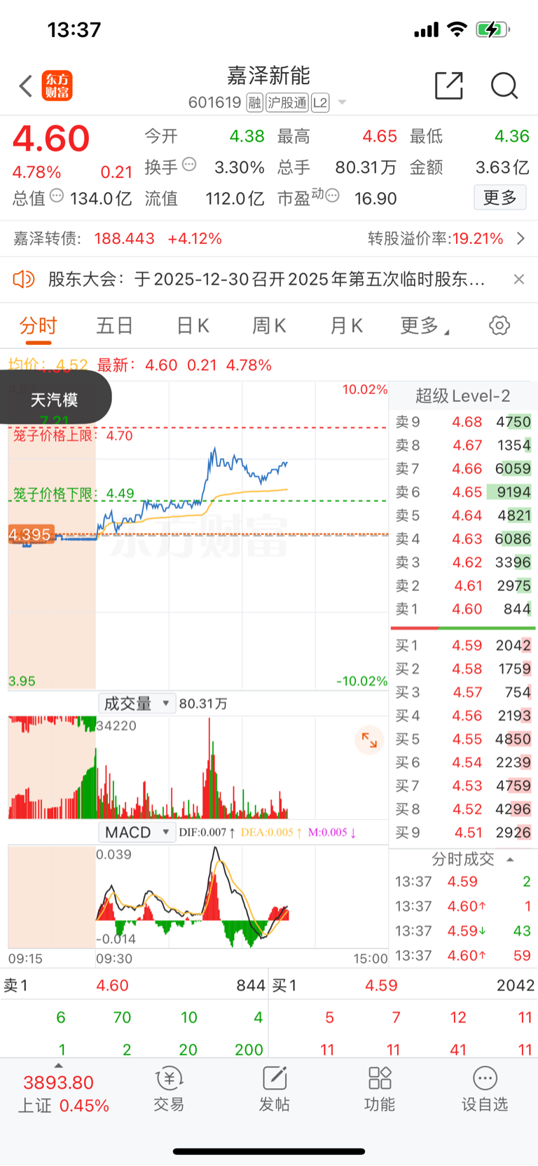 $嘉泽新能(SH601619)$ 今天一阳包四阴跑不掉了