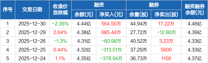 嘉泽新能:融资净买入564.5万元,融资余额4.44亿元(12-30)