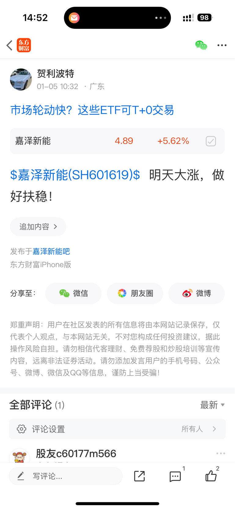温馨提示: 1.根据《证券法》规定,禁止编造、传播虚假信息或者误导性信息,扰乱证券市场;2.用户在本社区发表的所有资料、言论等仅代表个人观点,与本网站立场无关,不对您构成任何投资建议。用户应基于自己的独立判断,自行决定证券投资并承担相应风险。《东方财富社区管理规定》