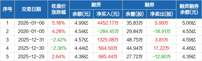 嘉泽新能:融资余额4.99亿元,创历史新高(01-06)
