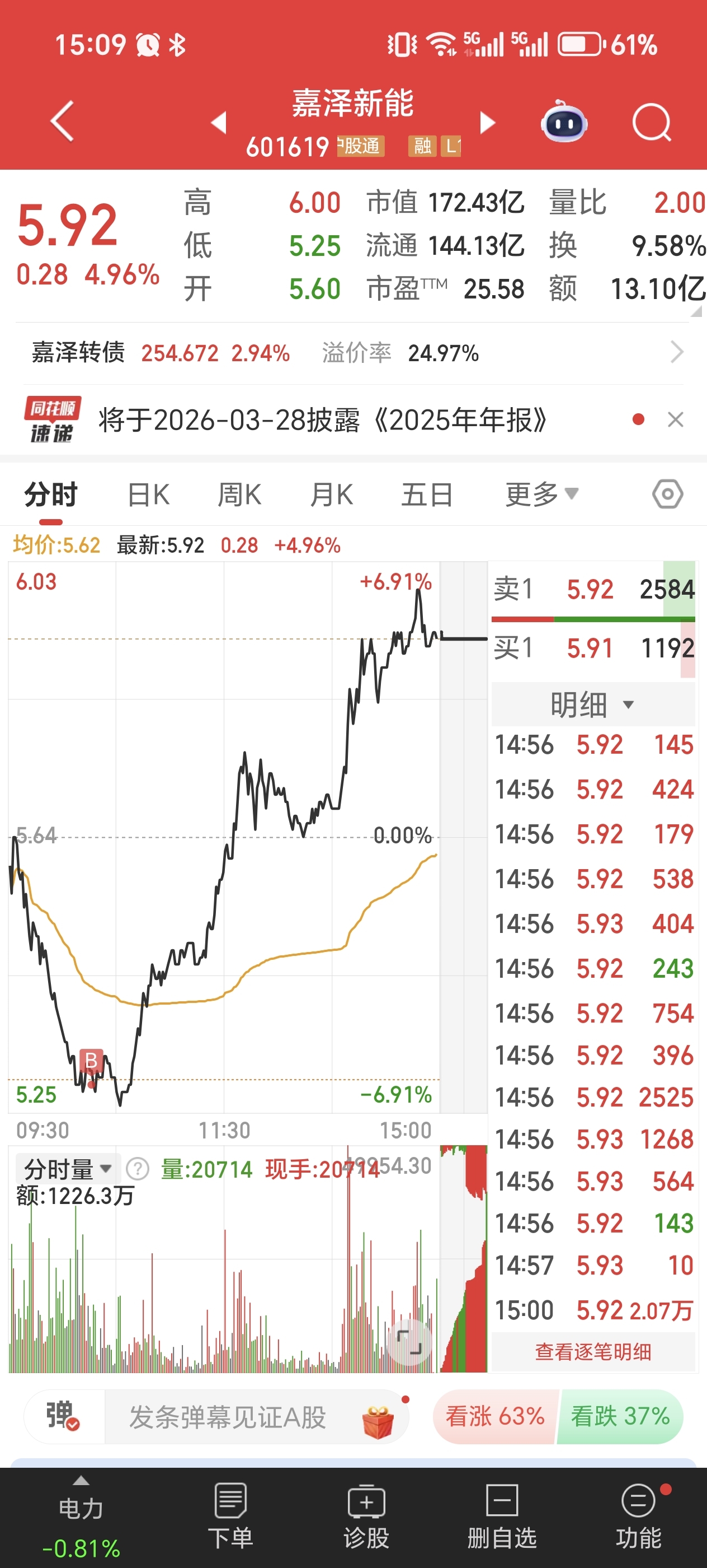 $嘉泽新能(SH601619)$ 不错很有韧劲